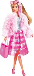 Die Puppe STEFFI LOVE Flamingo begeistert alle kleinen Modefans. Den Look ergänzen rosafarbene transparente Sonnenbrillen, eine große Handtasche mit Flamingo‑Print und ein rosa Kunststoff‑Überrock, der abnehmbar ist und so das Aussehen der Puppe je nach Stimmung verändert.