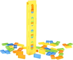 Diese bunte Lokomotive mit Steinspender legt das Domino selbstständig in festen Abständen und signalisiert jedes Absetzen mit einem Ton. Kinder können die Fahrtrichtung leicht durch Drehen des Schornsteins wählen und so abwechslungsreiche Strecken und Muster gestalten. Leuchtende Farben und ein ansprechendes Design ziehen die Aufmerksamkeit auf sich und motivieren zu langem Spielspaß.