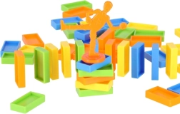 Lieferumfang: bunte Lokomotive, Steinspender, 80 Dominosteine und ein Kunststoffkaktus als Hindernis.