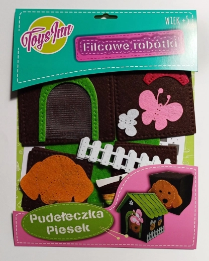 Entdecken Sie den Zauber von Filzarbeiten und gestalten Sie Ihre eigenen Zimmerdekorationen. Dieses kreative Set ermöglicht es Ihnen, eine größere Schachtel in Form eines Häuschens und eine kleinere quadratische Schachtel mit einem niedlichen Hund zu nähen. Das Set ist so konzipiert, dass das Nähen sicher und unterhaltsam ist – es wird eine Kunststoffnadel und Baumwollgarn verwendet.