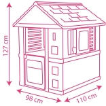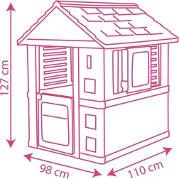 Perfekt für Spiele im Garten und im Innenraum – das Haus bietet dank drei Fenstern eine hervorragende Belüftung, Privatsphäre durch Fensterläden und einen bequemen Zugang über die öffnende Tür. Die Oberfläche mit Anti-UV-Behandlung schützt die Farben vor der Sonne, sodass das Haus langfristig wie neu aussieht.