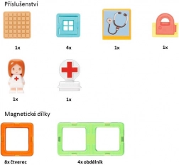 Magformers Städtchen: Krankenhaus ist Teil einer Serie, die kleinen Baumeistern ermöglicht, ihre eigenen Gemeinden und Städte nach ihrer Fantasie zu gestalten. Dieses Set enthält 22 Teile – 8 Quadrate, 4 Rechtecke, 9 Kunststoffzubehörteile und 1 Figur. Ideal zum Kombinieren mit weiteren Sets der Serie Städtchen.