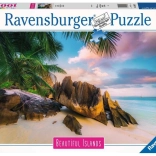 Begeben Sie sich an sonnenverwöhnte Strände und in türkisfarbene Lagunen mit dem Ravensburger Puzzle mit dem Motiv der Seychellen. Dank präziser Stanzung und hochwertiger Pappe fügen sich die einzelnen Teile perfekt zusammen, und das fertige Bild besticht durch satte Farben und detailreiche Zeichnung. Ideal für ruhige Abende, Konzentrationstraining und als schöne Wohnungsdekoration nach dem Zusammensetzen.