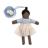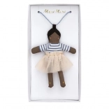 Niedliche Halskette mit Puppe Ruby, die jedes Outfit verschönern wird. Diese Kreation mit Perlenkette und Puppe aus Baumwolle ist ein wahres Schmuckstück.