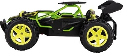 Das RC Auto Carrera Lime Buggy ist die ideale Wahl für Einsteiger und Fortgeschrittene, die Offroad-Spaß suchen. Leichte und robuste Konstruktion im Roll-Cage-Stil, leistungsfähige Dämpfer und hohe Bodenfreiheit sorgen für Stabilität und Traktion auf Schotter, Gras und Erde. Präzise Gas- und Lenkdosierung auf 2,4‑GHz-Frequenz ermöglicht eine sanfte, störungsfreie Kontrolle.
