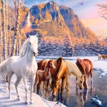 Dieses bezaubernde Motiv zeigt eine ruhige Winterlandschaft mit Pferden am Bach und Bergpanorama. Das Puzzle mit 500 Teilen bietet eine ausgewogene Herausforderung für Einsteiger wie Fortgeschrittene und lässt sich dank hochwertiger Materialien auch mehrfach hervorragend legen.