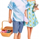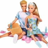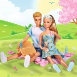 Begeben Sie sich auf ein gemeinsames Abenteuer mit den Puppen Steffi und Kevin. Dieses Duo ist perfekt für einen sommerlichen Ausflug vorbereitet, begleitet von einem kleinen Hund und ausgestattet mit Decke, Picknickkorb und einem Set Geschirr.
