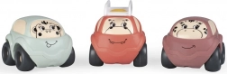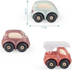Zwei Stadtflitzer mit tierischen Gesichtern und ein Feuerwehrauto mit Leiter sind stoßfest und bereit für den täglichen Spielspaß.