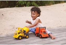 Der Kinder-Betonmischer der Marke LENA wird umweltschonend aus recycelten Materialien mit Holzanteil gefertigt, ist vollständig mechanisch funktionsfähig und bereit für actionreiches Spielen im Alltag. Er bietet eine rotierende Mischtrommel, eine aufklappbare Kabine und eine Sicherung gegen unbeabsichtigtes Auskippen. Die robuste Ausführung begeistert Kinder ab 2 Jahren – drinnen wie draußen.
