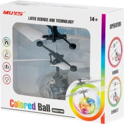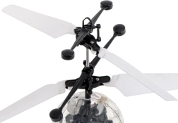 Die Steuerung ist sehr einfach: Schalten Sie das Spielzeug ein, stellen Sie es senkrecht auf die Handfläche und nach kurzer Zeit startet es von selbst. Elastische Rotoren erhöhen die Sicherheit und bei einer Kollision mit einem Hindernis stoppt der Motor, sodass die Kugel langsam sinkt. Nach einem Sturz muss das Spielzeug aus- und wieder eingeschaltet werden. Luftströmungen (Wind, Ventilator, Klimaanlage) können die Stabilität beeinflussen – wir empfehlen die ersten Flüge in einer ruhigen Umgebung.