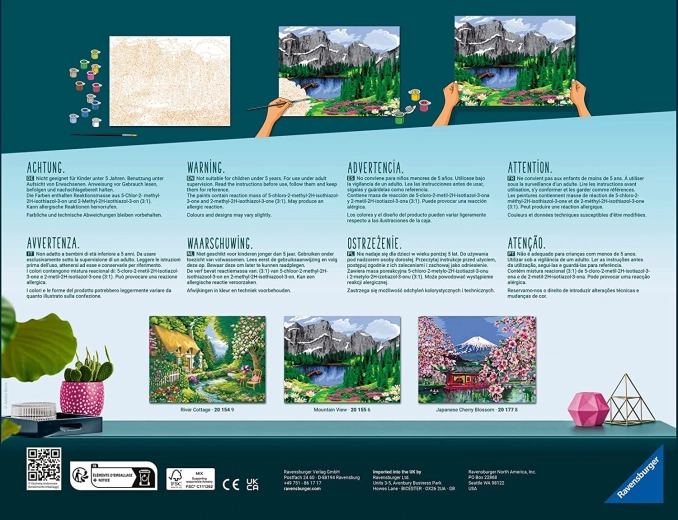 • Wasserbasierte Acrylfarben – in separaten, nummerierten und wiederverschließbaren Behältern