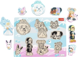Das Holzpuzzle mit dem Motiv Eis-Schloss ist für die ersten Formenentdeckungen konzipiert. Jedes der 8 stabilen Teile hat einen Holzknauf für einfaches Greifen und ein präzises Einsetzen. Die Grundplatte mit vertieften Formen und einer zum Teil passenden schwarz-weißen Grafik erleichtert die Orientierung und unterstützt selbstständiges Lösen.