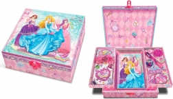 Entdecken Sie ein zauberhaftes Geschenkset in einer dekorativen Box mit dem Motiv Princess. Zwei seitliche Fächer lassen sich leicht ausklappen, und darunter verbirgt sich ein Tagebuch für geheime Wünsche und Erlebnisse. Perfekt zum Aufbewahren kleiner Dinge und zum täglichen Schreiben.