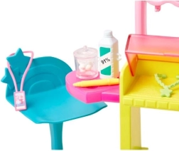 Das Ohrenpiercing-Studio bietet Platz zur Präsentation von Ohrringen und Aufbewahrung des Puppenzubehörs sowie einen Stuhl für Kunden. Weiteres Zubehör umfasst Desinfektionsmittel, Wattebällchen, einen Mitarbeiterausweis, einen Ohren-Marker und 2 Halsketten, die das Spiel bereichern. Diese einzigartige Verwandlung kann immer wieder wiederholt werden, was dieses Set mit der Skipper-Puppe zu einem idealen Geschenk für Kinder ab 3 Jahren macht.