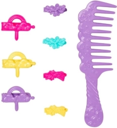 Bunte Clips, Spangen und ein breiter Kamm erleichtern das Entwirren und sorgen für sicheren Halt neuer Frisuren ohne Ziepen.
