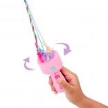 Die Barbie-Puppe aus dem Märchenreich Dreamtopia hat extra langes Haar mit Regenbogensträhnen, die direkt zum Stylen einladen. Einfach 2–3 Strähnen in das Flecht- und Drehgerät einsetzen und mit einem Knopfdruck bezaubernde, gedrehte Frisuren kreieren. Drei Regenbogen-Clips halten die Frisur an Ort und Stelle, während bunte Spangen den finalen Look abrunden.