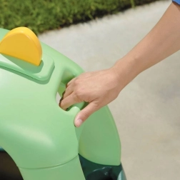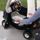 Für noch mehr Spaß und Komfort sorgen das Lenkrad mit Hupe, die klickende Zündung, der öffnende Tankdeckel und die Getränkehalter hinter dem Sitz. Die vorderen Räder drehen sich um 360°, was das Kurvenfahren drinnen wie draußen erleichtert. Eltern können das Fahrzeug dank des integrierten Griffs im Dach leicht führen. Die Herstellung mittels Rotationsguss-Technologie gewährleistet Langlebigkeit und Widerstandsfähigkeit.