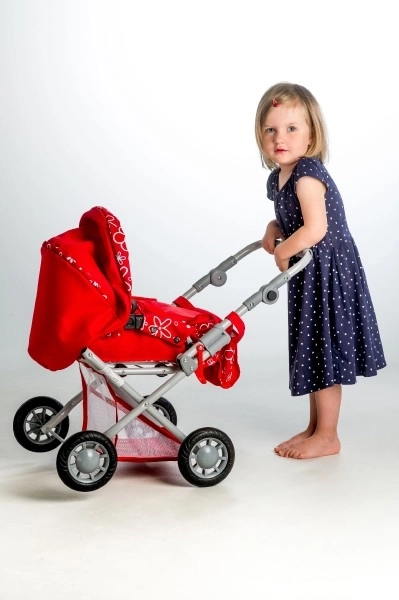 Der Puppenwagen Magda überzeugt mit realistischer Ausführung und praktischen Funktionen. Die stabile Metallkonstruktion, die textile Wanne und das verstellbare Verdeck sorgen für komfortables „Spazierenfahren“ der Lieblingspuppen oder Kuscheltiere. Dank der Möglichkeit des einfachen Zusammenklappens ist er ideal auch für kleinere Räume oder für unterwegs.