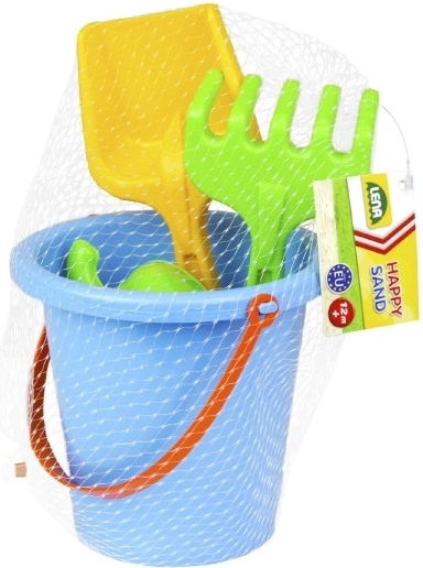 Im Lieferumfang ist alles enthalten, was kleine Baumeister brauchen: ein geräumiger Eimer mit 16 cm Durchmesser, Schaufel, Harke und drei Förmchen. Leichter und langlebiger Kunststoff erleichtert Handhabung und Reinigung, sodass das Set perfekt für Sandkasten, Strand und Garten ist.