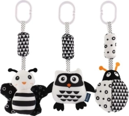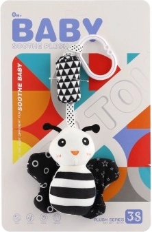 Dieses schwarz-weiße hängende Plüschspielzeug ist für Babys ab 0 Monaten konzipiert. Der hohe Farbkontrast zieht den Blick des Kindes auf natürliche Weise an, fördert die Konzentration und die ersten visuellen Fähigkeiten. Weiche Materialien und sanfte Geräuschreize bringen sichere und beruhigende Sinneseindrücke.