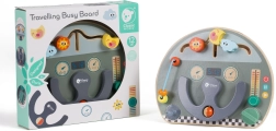 Die Tafel besteht aus hochwertigem Holz mit Elementen aus robustem Kunststoff und ist mit ungiftigen Farben veredelt. Dank der praktischen Maße passt sie perfekt ins Auto, in den Kinderwagen und nach Hause. Das Spielzeug unterstützt Lernen durch Spiel und hält dank der vielen Elemente die Aufmerksamkeit der Kinder lange aufrecht.