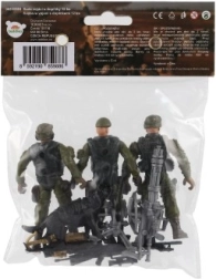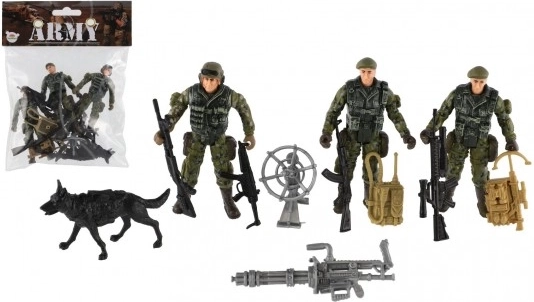 Die Verpackung enthält drei Soldaten, einen Hund und weitere taktische Accessoires für ein vollständiges Spielerlebnis.
