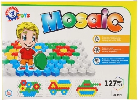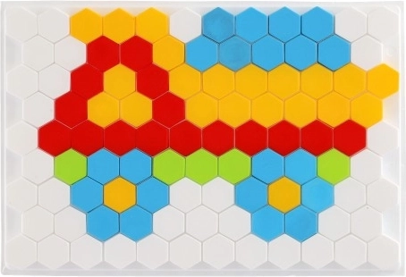 Dieses kreative Mosaik ist ein ideales Spielzeug zur Förderung der kindlichen Fantasie. Es enthält 127 verschiedenfarbige Teile, die es ermöglichen, unterschiedliche Formen und Muster auf einer basis inspiriert von Bienenwaben zu erstellen.