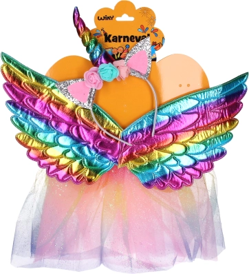 Dieses verspielte Set mit Einhorn-Motiv zaubert ein Lächeln auf jedes Kindergesicht. Dank der Kombination aus Haarreif mit Horn, Flügeln und Rock stellen Sie im Handumdrehen ein eindrucksvolles Kostüm für Karneval, Maskenball oder eine Themenparty zusammen.