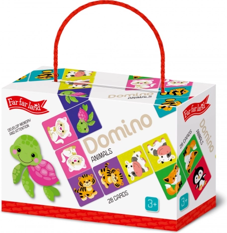 Das Far Far Land Domino mit Tieren ist ein großartiges Spiel für Unterhaltung und Förderung des logischen Denkens für Kinder und Erwachsene.