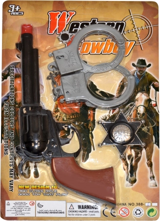 Werden Sie zum Hüter des Gesetzes im Wilden Westen! Das Sheriff-Set für Kinder enthält eine Pistole, Handschellen und ein Abzeichen – ideal für Rollenspiele und abenteuerliche Geschichten. Größe des Hauptspielzeugs 22 cm, geeignet ab 3 Jahren.