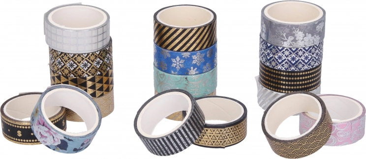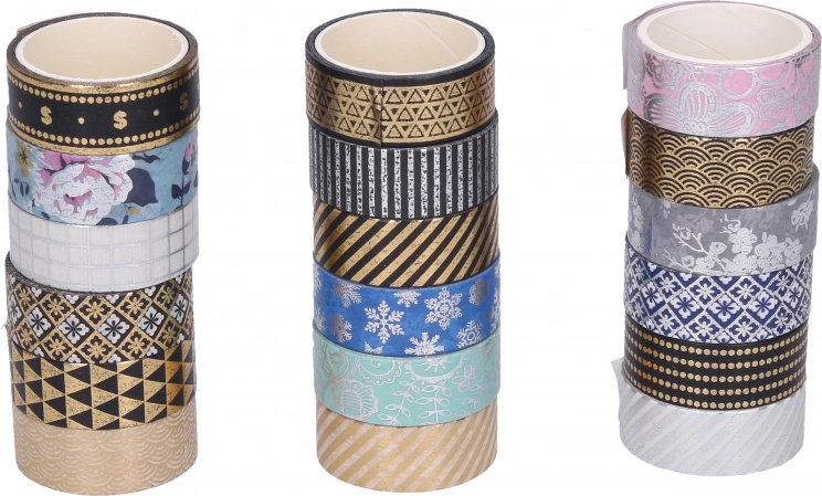 Stilvolles, dekoratives Washi-Tape mit einer Breite von 1,5 cm und einer Länge von 3 m verleiht Ihren Projekten das gewisse Etwas. Wählen Sie aus verschiedenen Motiven für Scrapbooking, Planer und Geschenkverpackungen.