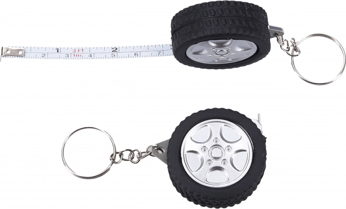 Ein praktischer Schlüsselanhänger in Form eines Rads mit integriertem 1-Meter-Maßband ist das perfekte Zubehör für jeden, der stets ein Maßband zur Hand haben möchte.