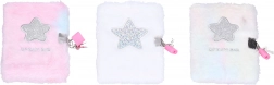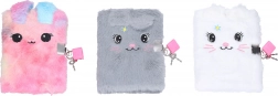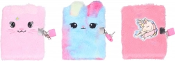 Niedliches Tagebuch mit Plüschoberfläche und Schloss im praktischen Format 10,5 × 15 cm bietet 70 unlinierte Seiten zum Schreiben und Zeichnen. Erhältlich im Motiv-Mix.