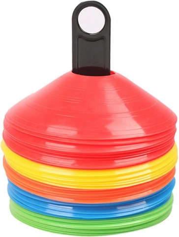 Praktische Trainingsscheiben in 5 intensiven Farben! Ideal für die Gestaltung von Trainingsbereichen oder die Mannschaftsteilung in Teamsportarten. Sie eignen sich hervorragend zur einfachen Abgrenzung von Spiel- und Trainingszonen. Das Set enthält einen speziellen Ständer mit Griff zur bequemen Aufbewahrung aller Scheiben. Sie sind für den Einsatz auf jeglicher Oberfläche und unter allen Wetterbedingungen geeignet. Die Scheiben sind feuchtigkeitsresistent und verblassen oder brechen nicht bei intensiver Sonneneinstrahlung.
