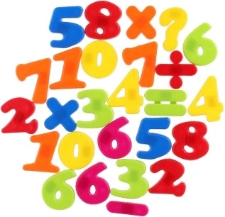 Kreieren Sie unterhaltsame mathematische Beispiele mit diesen bunten magnetischen Zahlen und Symbolen. Sie helfen Kindern beim Erlernen der grundlegenden mathematischen Fähigkeiten.
