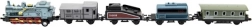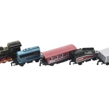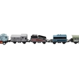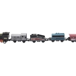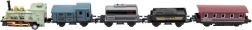 Das Zugset mit Lokomotive und vier Waggons erfreut jeden Eisenbahnliebhaber. Dank der Kombination aus Metall- und Kunststoffausführung wirken die Modelle realistisch und halten zugleich ausgelassenem Kinderspiel stand. Jedes Teil hat eine kompakte Länge von 8 cm und passt somit gut in die Hand und auf die heimische Strecke.