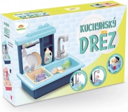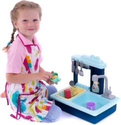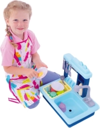 Blaues Kindergeschirrspülbecken mit batteriebetriebenem Wasserhahn
