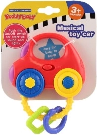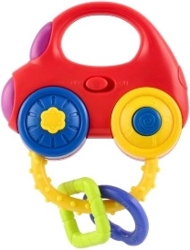 Das farbenfrohe Auto-Rasselspielzeug bietet Spaß und fördert zugleich Hör-, Seh- und Feinmotorik. Einfach schütteln oder die Tasten drücken, und das Spielzeug lässt Lichter aufleuchten, spielt Melodien und realistische Geräusche von Start, Fahrt und Hupen. Die kompakten Abmessungen von 10 × 11 cm und die abgerundeten Formen erleichtern das Greifen auch für die Kleinsten.