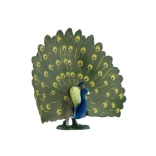 Diese realistische Plastikfigur zeigt einen majestätischen Kronenpfau mit betonten Farben und der charakteristischen Krone am Kopf. Dank der ausgearbeiteten Details kommen die typischen „Pfauenaugen“ auf den Deckfedern sowie der Kontrast des blauen Körpers und der grünen Federn zur Geltung.