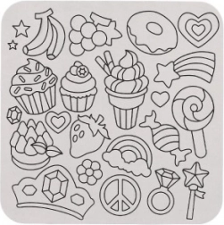 Enthält verschiedene Folien und Aufkleber mit Motiven wie Cupcakes und Blumen.