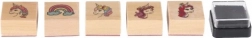 Das Set enthält 5 Holzstempel und ein schwarzes Stempelkissen – einfach öffnen und losstempeln, ganz ohne zusätzliche Hilfsmittel.