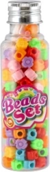 Kunststoffperlen mit Schnur in Döschen – Farbmix