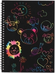 Einfach kratzen und unter der schwarzen Oberfläche erscheinen leuchtende Farben. Idealer Kreativspaß ganz ohne Farben und Kleber.
