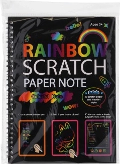 Dieser Kratzblock mit Regenbogenhintergrund bietet eine einfache, aber faszinierende Möglichkeit, einzigartige Bilder zu gestalten. Auf der schwarzen Oberfläche genügt sanftes Kratzen und sofort erscheinen leuchtende Regenbogenfarben. Hervorragend für kleine Künstler und als entspannende Beschäftigung für ältere Kinder.