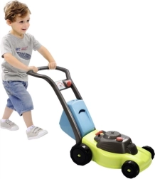 Dieser realistische Kinder-Rasenmäher in Grün-Grau regt die Fantasie an und fördert aktive Bewegung im Garten. Dank der beweglichen Räder fährt er mühelos über verschiedene Untergründe, und das geringe Gewicht sorgt für eine bequeme Handhabung auch für die Kleinsten.