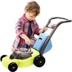 Enthalten ist ein blauer, herausnehmbarer Korb, der in den Innenraum eingesetzt oder am Griff eingehängt werden kann. Den realistischen Eindruck vervollständigen die Schalter-Imitation und der rote „Zugstarter“ – nach Einschieben und Ziehen erzeugt der Mäher ein charakteristisches Startgeräusch, wodurch das Spiel noch unterhaltsamer wird.