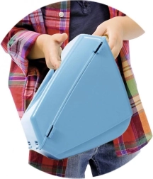 Der blaue Korb lässt sich leicht herausnehmen und am Griff einhängen. Kinder können „Gras sammeln“ und ihre motorischen Fähigkeiten verbessern.