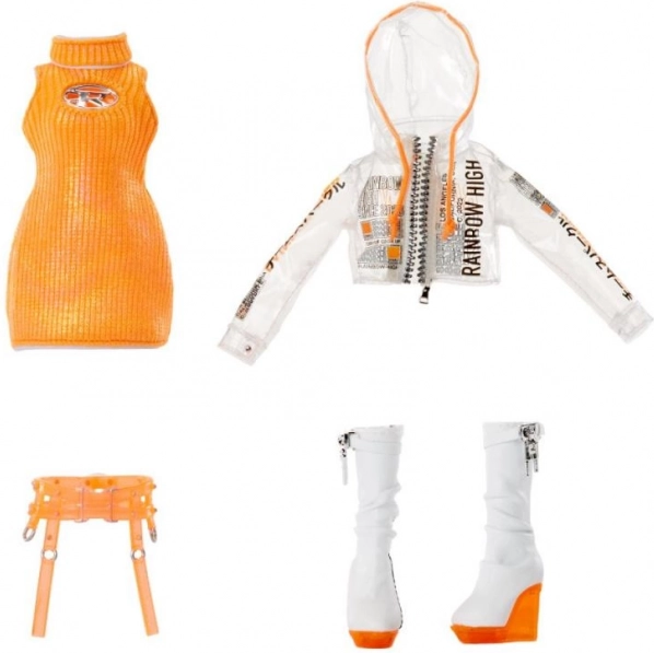 Die Puppe eignet sich sowohl für imaginäres Spiel als auch als Model auf Modenschauen. Der auffällig orangefarbene Look und das einzigartige Outfit bieten ein ästhetisches Erlebnis und fördern das kreative Spiel der Kinder. Tauchen Sie ein in die Welt von Rainbow High und lassen Sie Ihrer Fantasie freien Lauf!