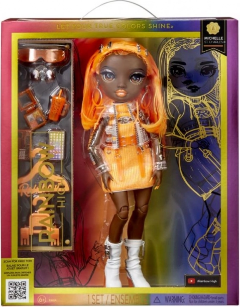 Entdecken Sie den Zauber der Modepuppe Rainbow High Michelle St. Charles, die nicht nur durch ihre lebendigen orangefarbenen Accessoires auffällt, sondern auch durch ihr stylisches Outfit. Sie ist etwa 22 cm hoch und ideal für Kinder ab 6 Jahren. Diese Puppe fördert nicht nur die Vorstellungskraft, sondern ist dank der Verpackung, die 8.1 x 20.3 x 30.5 cm misst, auch ein tolles Geschenk.