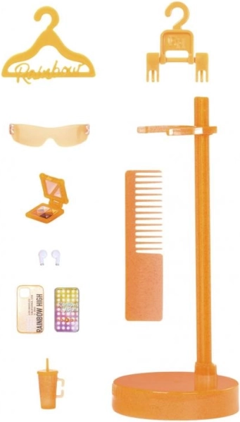 Die Puppe kommt mit zahlreichen stylischen Accessoires, darunter ein Kamm, Sonnenbrille, Aufhänger, Make-up-Palette und ein Getränkebecher, was sie zu einem großartigen Ort für Styling und Spiel macht.